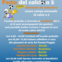 Intanto oggi si terrà la bellissima iniziativa in comune con l’Atletico Troia e organizzata direttamente dagli stessi dirigenti della squadra della cittadina troiana. La “Festa del calcio a 5” è un evento gratuito riservato ai ragazzi dai 5 ai 13 anni accompagnati dai genitori, che potranno partecipare attivamente alle lezioni mattutine di futsal da parte di quattro calcettisti della Fuente Foggia: Jonathan De Melo, Josè Abraham, Wagner Lolatto e Waldir De Lima.
